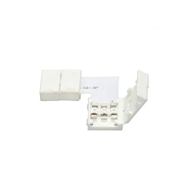 Кутовий конектор WS2811 | WS2812 | SK6812 Corner для поєднання адресних світлодіодних стрічок WS2811 WS2812 | SK6812 3pin. Застосовується для послідовного з'єднання кількох світлодіодних стрічок без використання паяльника і оформлення кутових з'єднань. Для з'єднання конектора зі світлодіодною стрічкою необхідно лише вставити кінець стрічки в контактну групу, а потім натиснути та заклацнути пластмасову кришку (кліпсу).